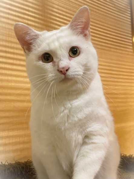 Sparkle is a stunning all-white female cat, estimated to be about 5 years old. She is a joy to be with! Sparkle likes to cuddle with people and is interested in what’s going on around her. Sparkle is accustomed to the other cats in her foster home. We think she would be okay with a polite dog after proper introductions are made. One of Sparkle’s tear ducts does not function properly, so she sometimes looks like she has a little cold because of excessive tearing. Our veterinarian sedated Sparkle to confirm that there is no serious problem. We simply wipe her face and occasionally clean her ears, then she’s back to being beautiful! Sparkle is spayed, up-to-date on vaccinations, and tested negative for FeLV-FIV. Please contact Paws of Hope at information@pawsofhope.org to learn more about our perfect girl, Sparkle.